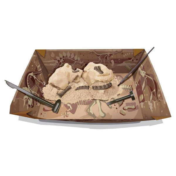 - Each kit contains a "buried" dinosaur skeleton in a plaster block, a special digging tool and a brush along with detailed instructions and fun facts about the dinosaur.