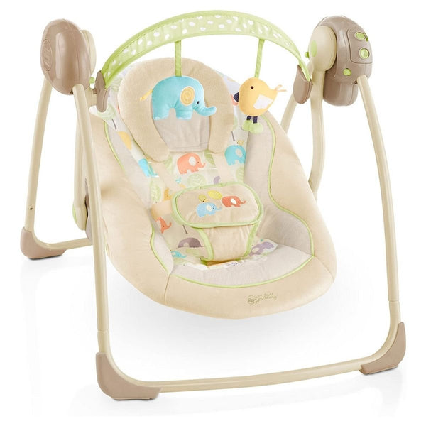 Your Swing in ultimate comfort – anytime, anywhere. The Comfort & Harmony portable swing in “Elepaloo” fashion is thoughtfully designed to be supremely cozy and stylish at home or on the go. The comfort recline seat adjusts to 2 positions and features removable head support.