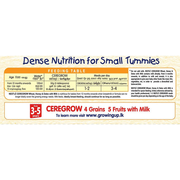 Nestle CEREGROW Junior Cereal with Milk Wheat, Honey & Dates with Milk from 1-3 years 250g Bag In Box Pack