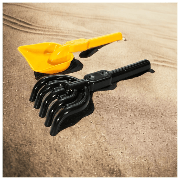 - Includes a bucket, strainer, teapot, shovel, rake, and four cookie cutters